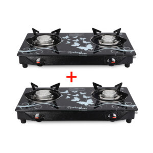 2 Burner Gas Stove Combo (2 Pcs Set) | Toughened Glass Tornado Burner | Manual Black Cooktop | Sigri Wala Cute Series