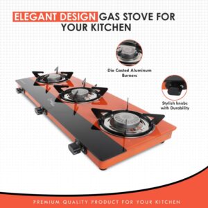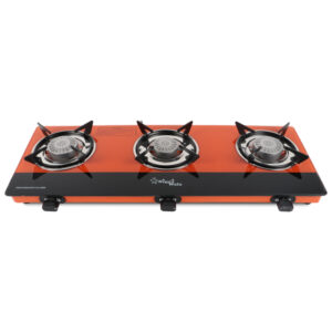 Sigri-wala Sleek Orange 3 Burner Gas Stove with Toughened Glass Tornado Burner – Orange