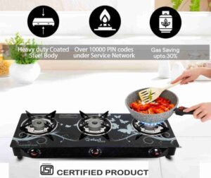 Sigri-wala Cute 3B Blkd PNG 3 Burner Gas Stove with Toughened Glass Tornado Burner – Black