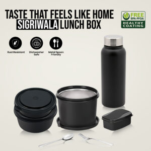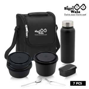 Sigri-wala Black Lunch Box Microwave Safe Set of 7 with Bottle|Bag & Cutlery 7 Containers Lunch Box (1250 ml, Thermoware)