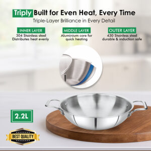 Kadhai 2.2L Triply Stainless Steel 22 cm – Sigriwala