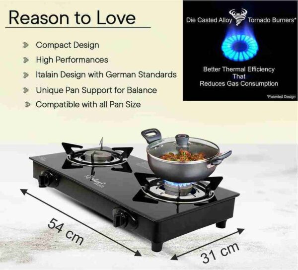 2 Burner Automatic Gas Stove – Toughened Glass Top with Tornado Burners | Sigriwala
