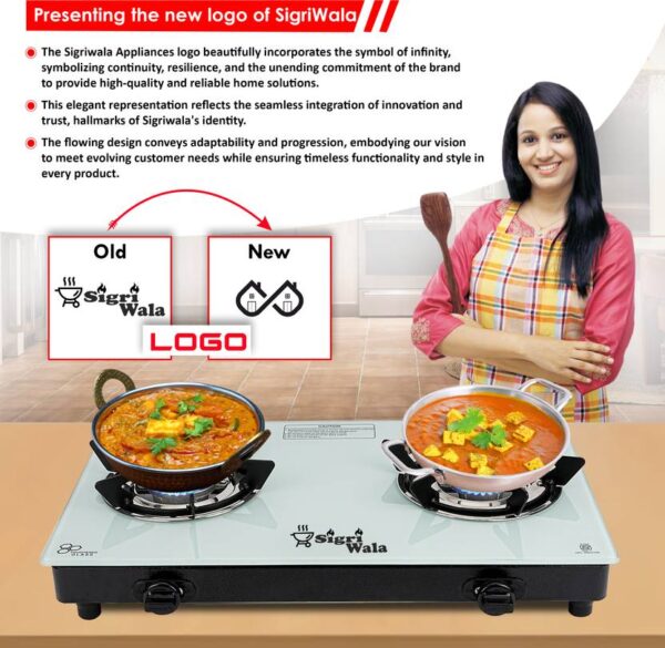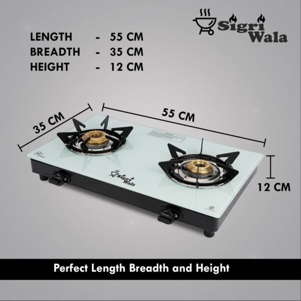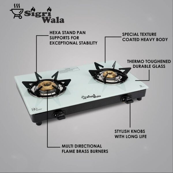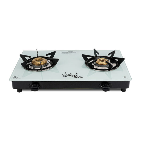 2 Burner White Glass Gas Stove with Auto Ignition – Hexastance Series | Sigriwala