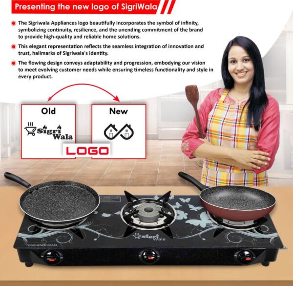 3 Burner Gas Stove – Surya PrimeCook Cute with Dosa Tawa & Frypan Combo | Sigriwala