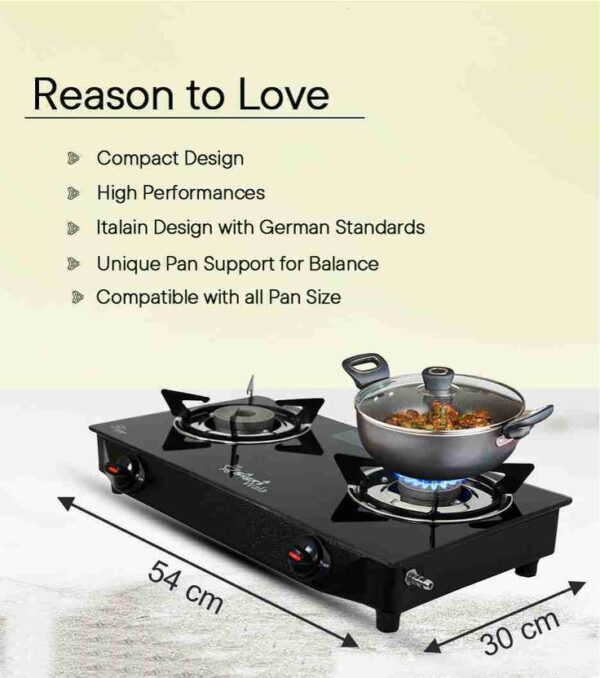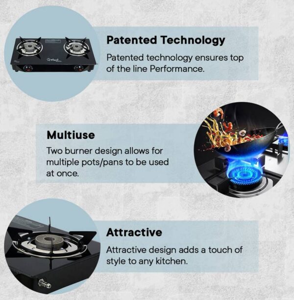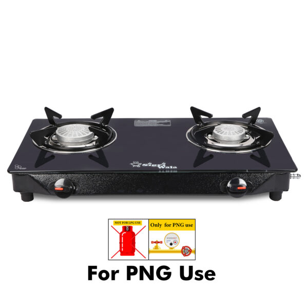 Sigriwala 2 Burner PNG Manual Gas Stove – Black Glass, Tornado Brass Burners
