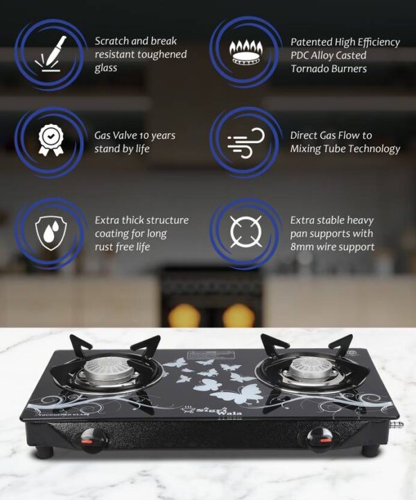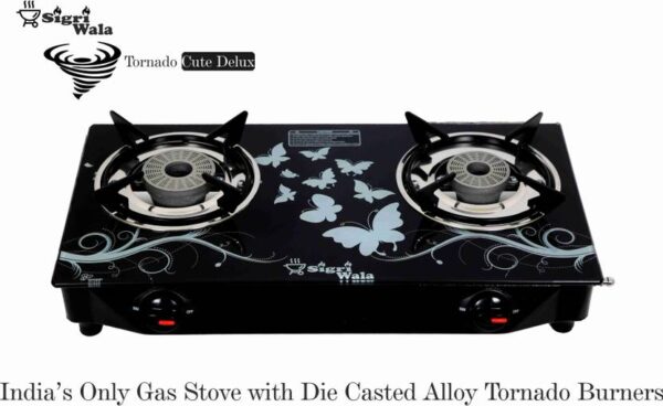 Sigriwala Cute DLX Series – 2 Burner Black Toughened Glass Gas Stove with Tornado Burners