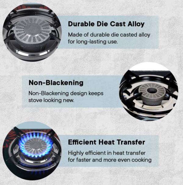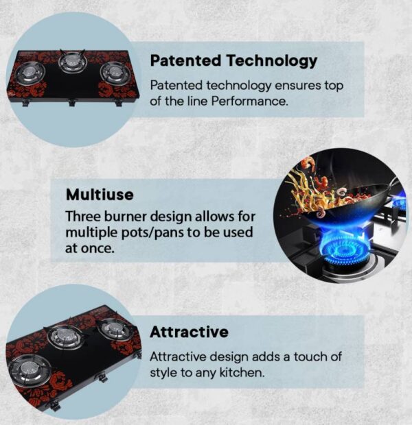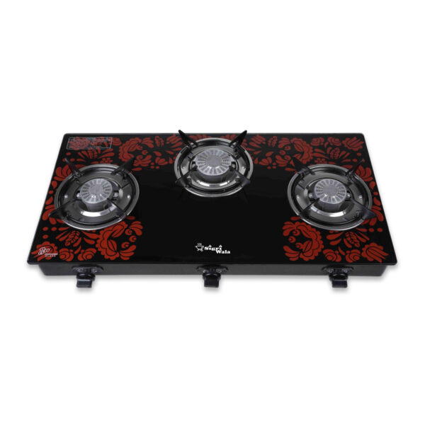 3 Burner Automatic Gas Stove with Aluminium Burners – Red Glass