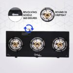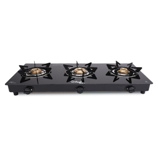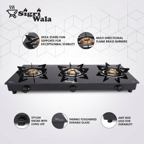 3 Burner Automatic Glass Cooktop – HexaStance Brass Burners, Black Finish | Sigriwala