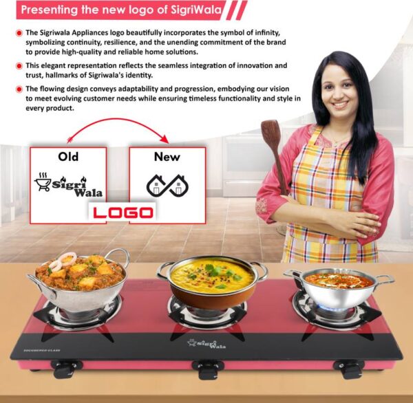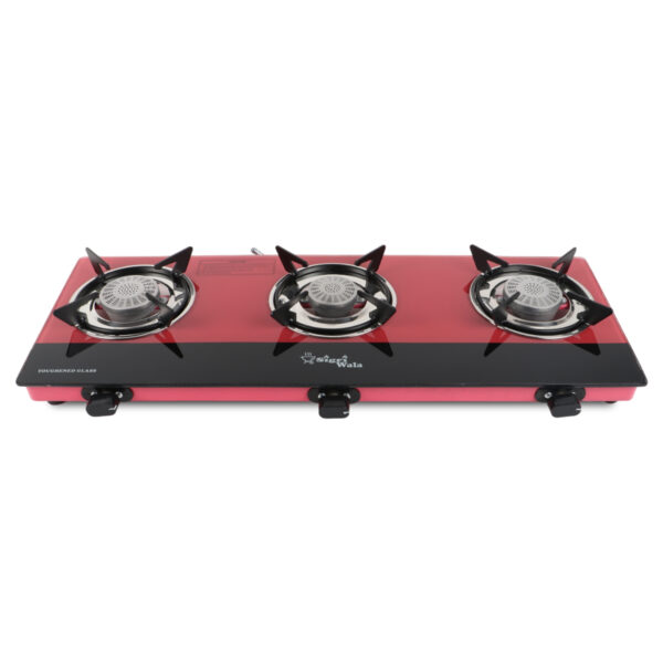 3 Burner Gas Stove | Pink Toughened Glass Cooktop – Sigri-wala Razor Series