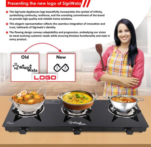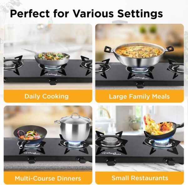 3 Burner Manual Gas Stove – Sleek Black Glass Top, Tornado Burners