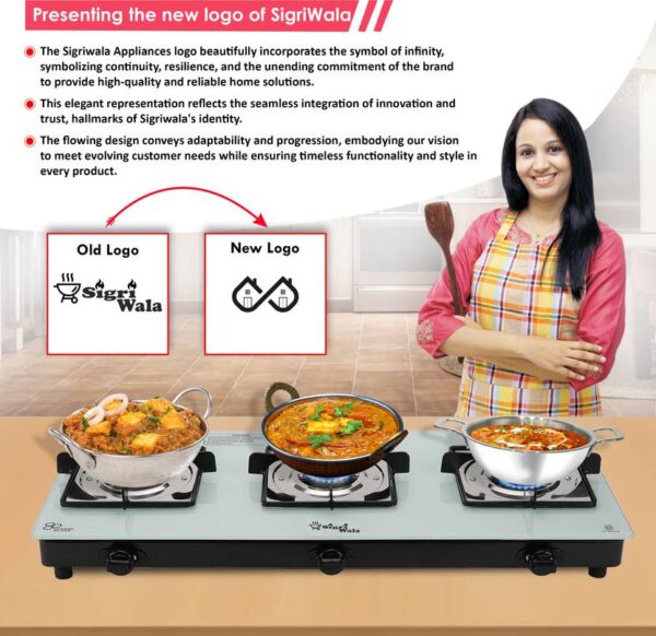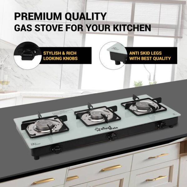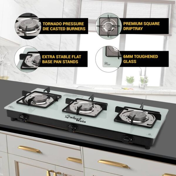 Sigriwala 3 Burner LPG Gas Stove – Orchid White Glass Top, Manual Ignition