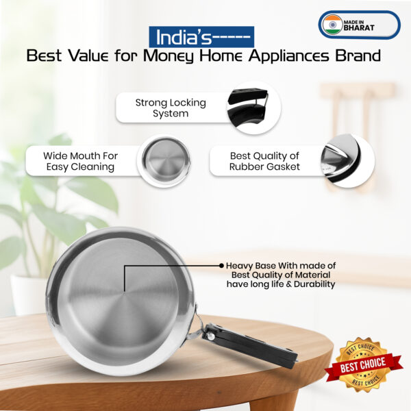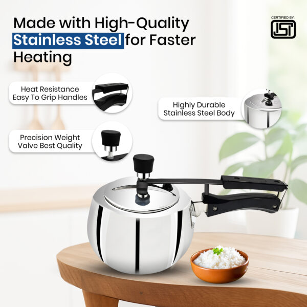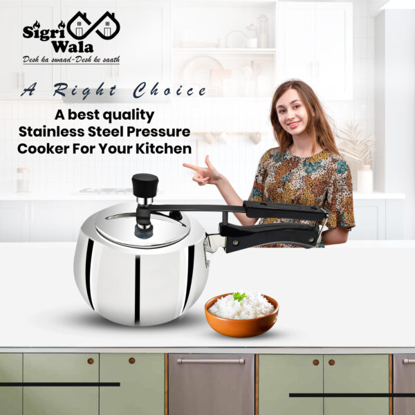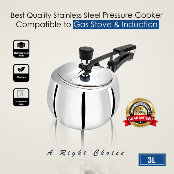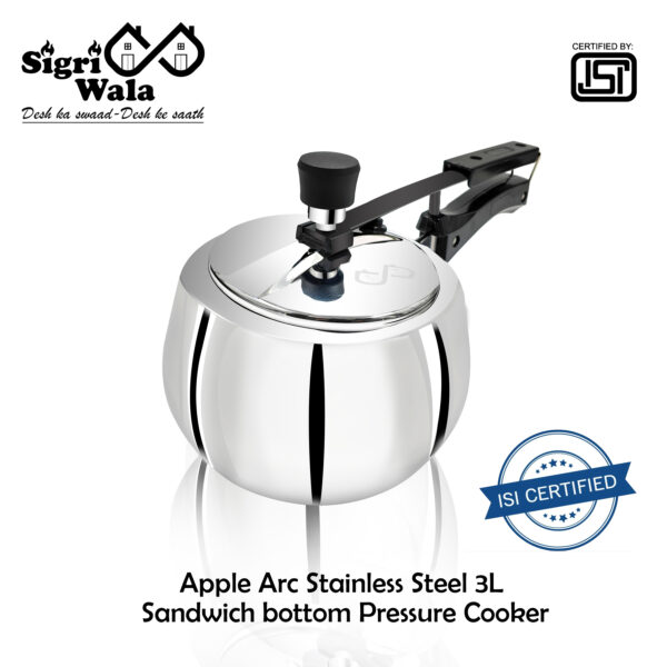 Sigri-wala Apple Arc Stainless Steel Sandwich bottom Induction base 3 L Inner Lid Induction Bottom Pressure Cooker (Stainless Steel)