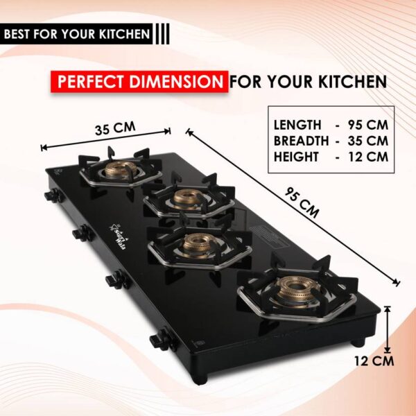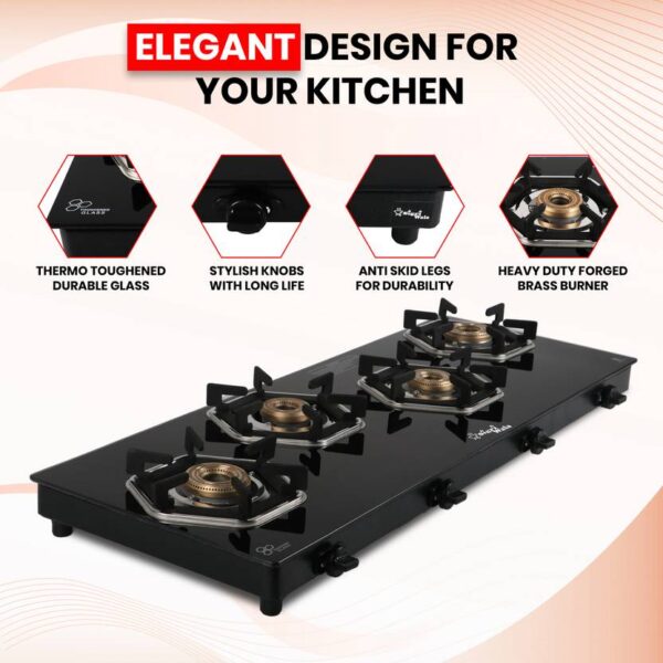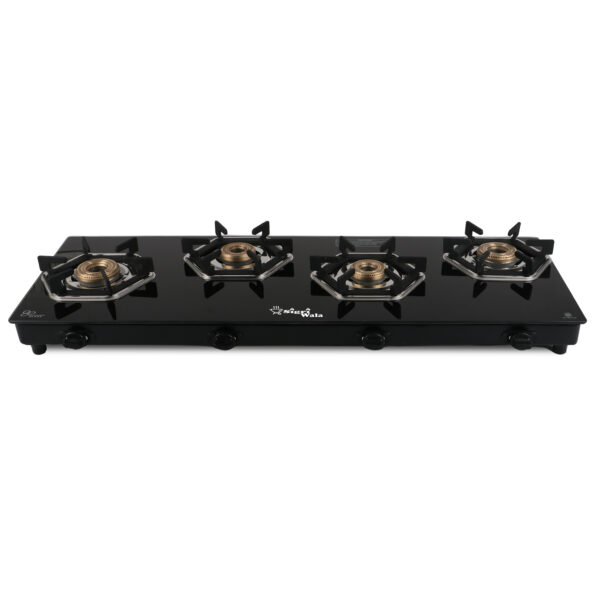 4 Burner Gas Stove | Black Toughened Glass Cooktop – Sigri-wala Titan Series HexFire
