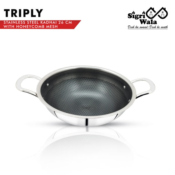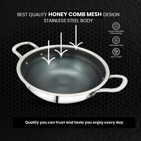 Cook Healthy Honeycomb Mesh Kadhai 26 cm diameter 3.3 L capacity (Triply, Induction Bottom)