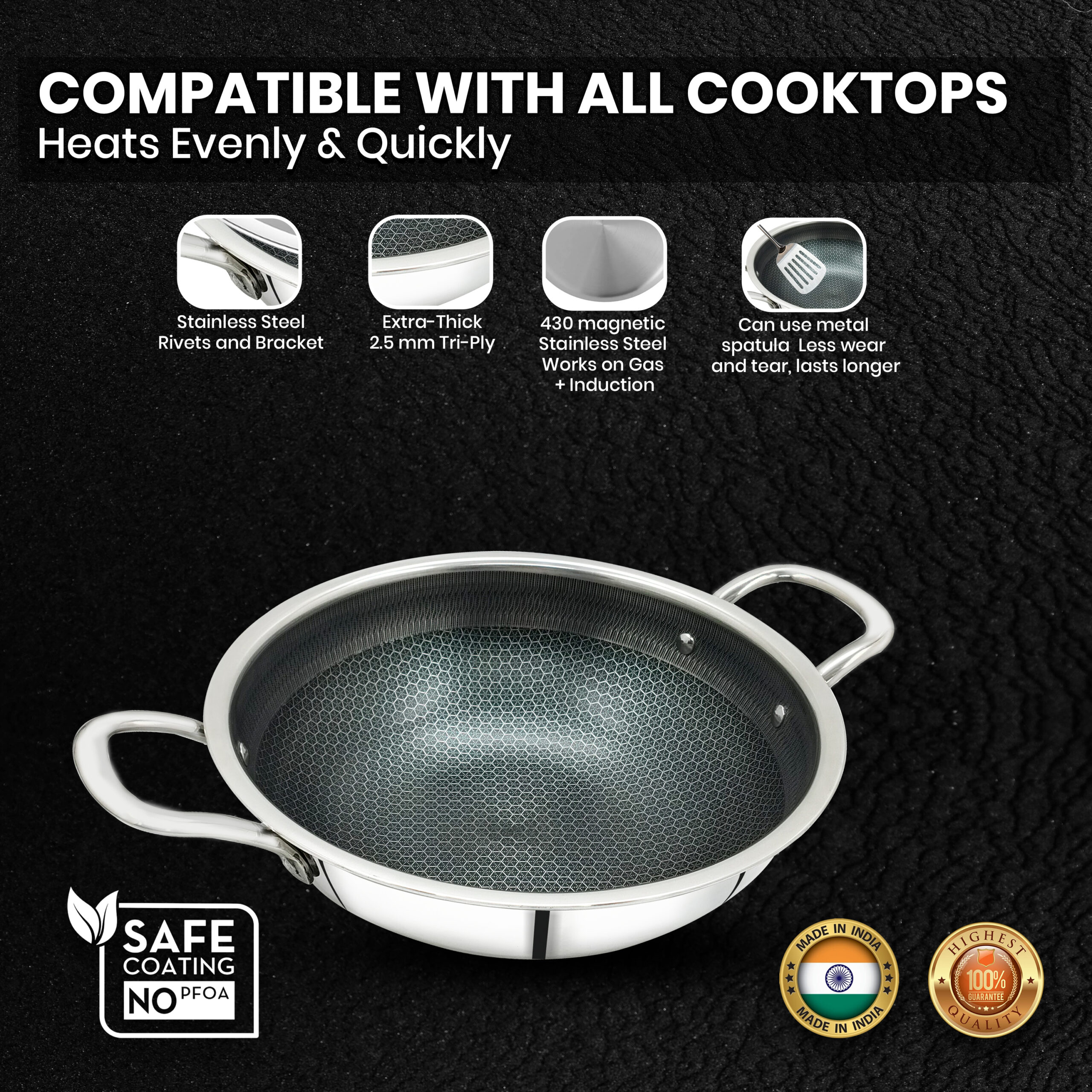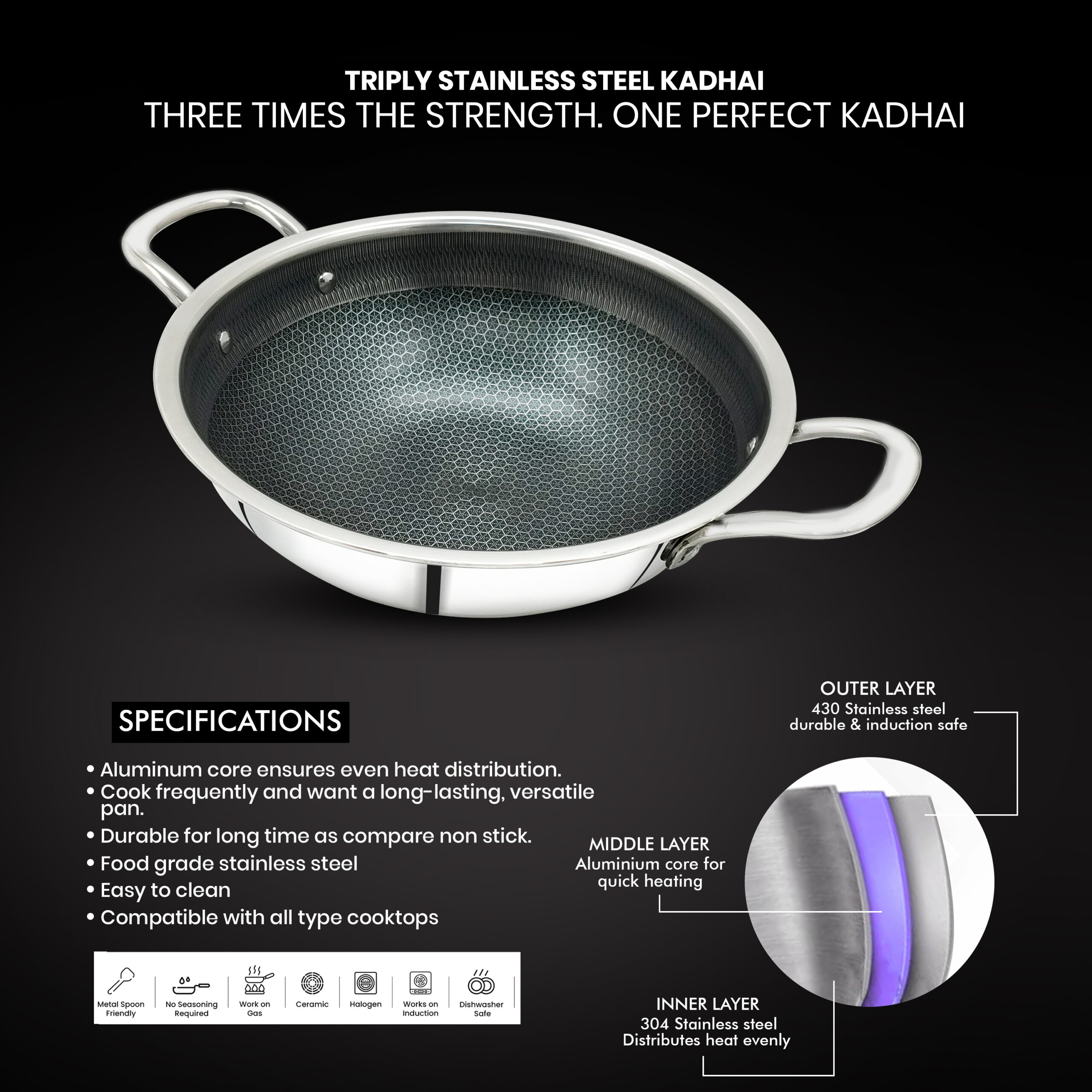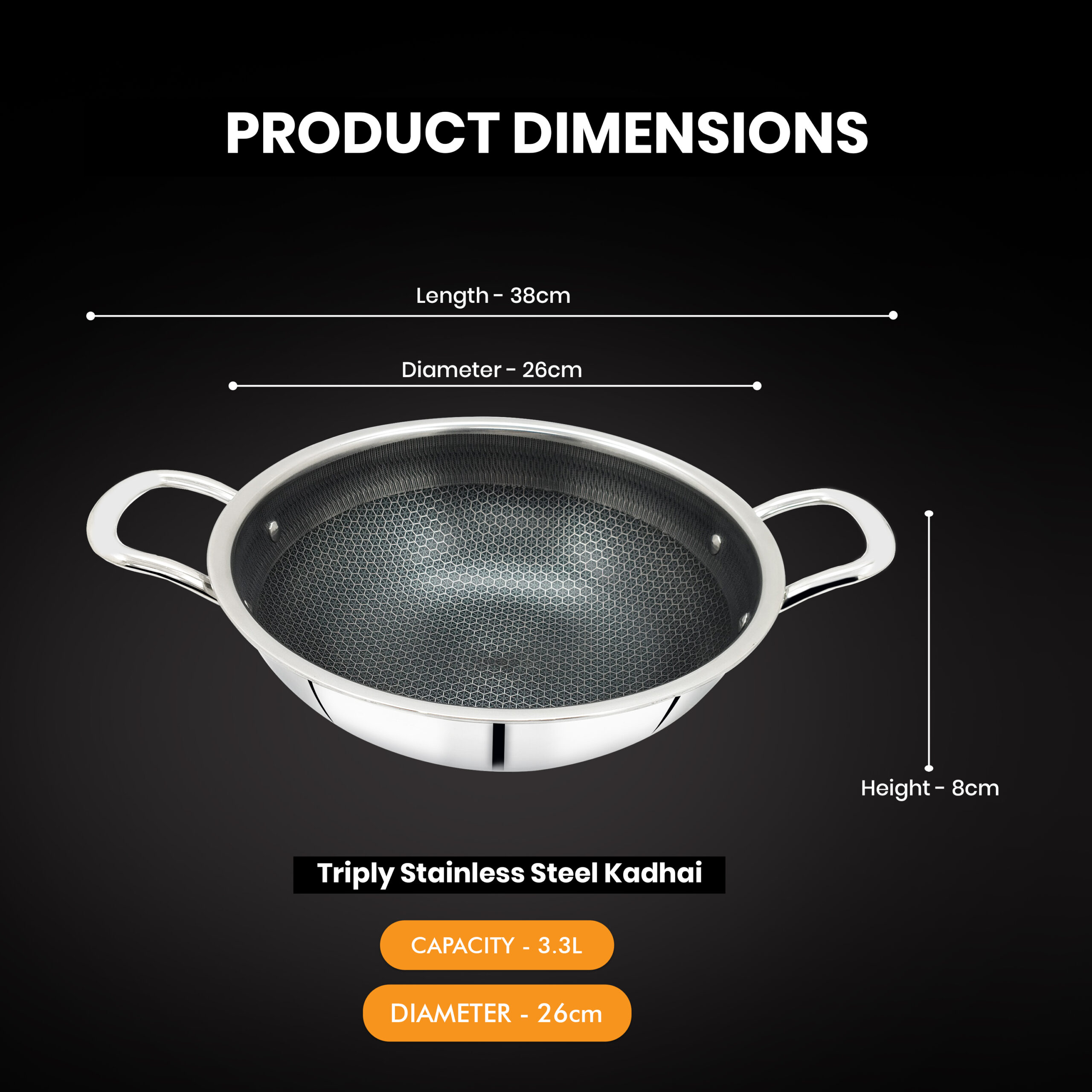 Cook Healthy Honeycomb Mesh Kadhai 26 cm diameter 3.3 L capacity (Triply, Induction Bottom)