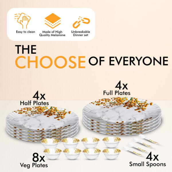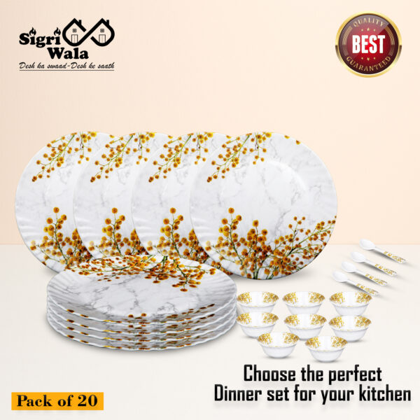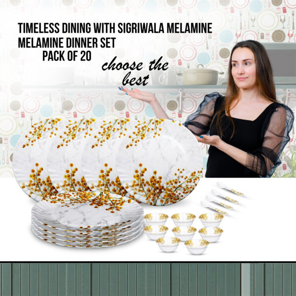 Dinner Set – SigriWala 20-Piece Melamine Floral Collection (White & Orange)