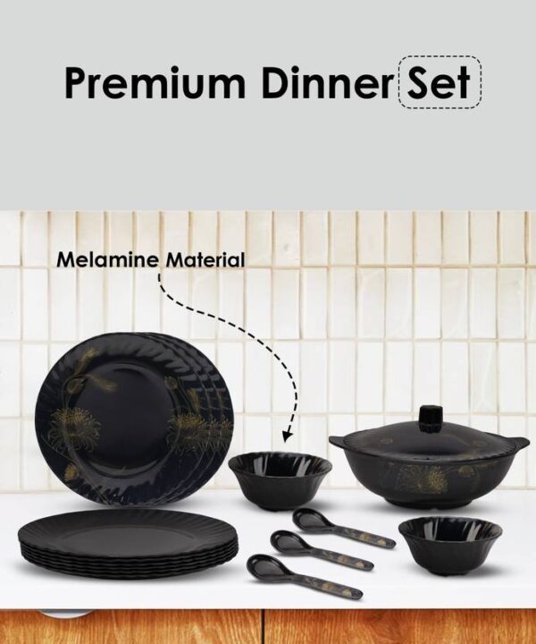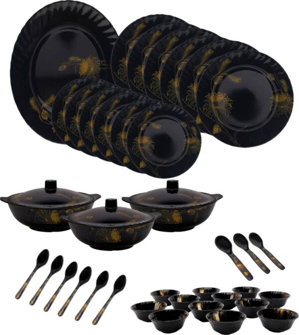 Dinner Set – SigriWala 40-Piece Melamine Black Flower Collection