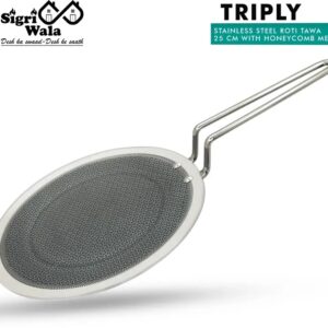 The Honeycomb Mesh Dosa Tawa 27 cm from Sigri-wala combines sleek design and smart engineering. Built with triply construction and an induction-compatible base, this tawa ensures even heat across its surface for crisp, golden dosas from the first use.