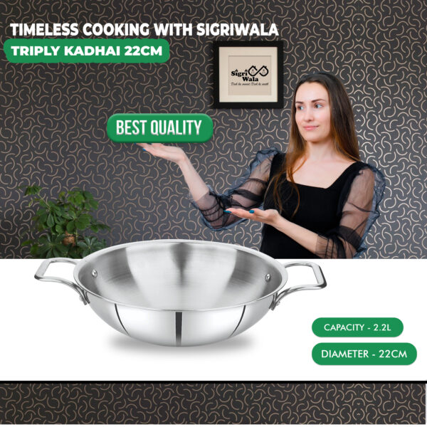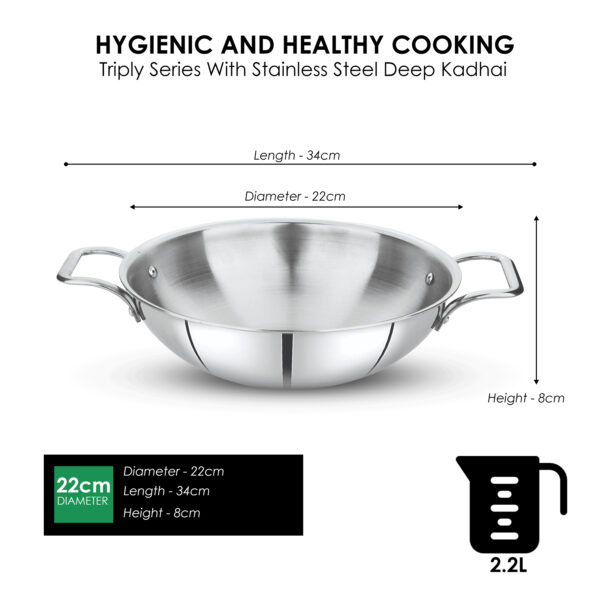 ✅ Capacity: 2.2L Triply Kadhai, 22 cm diameter