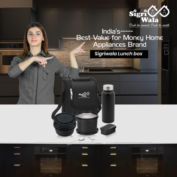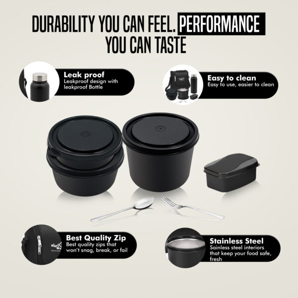 Sigri-wala Black Lunch Box Microwave Safe Set of 7 with Bottle|Bag & Cutlery 7 Containers Lunch Box (1250 ml, Thermoware)
