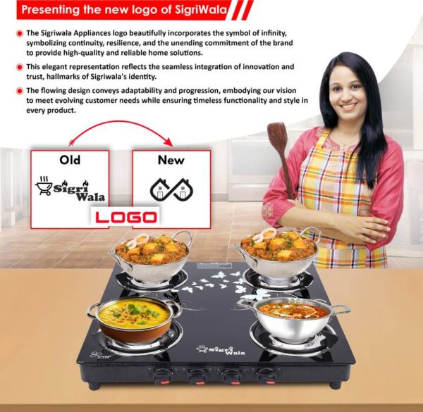 Enhance your cooking experience with the Sigri-wala 4B PNG Toughened Glass Tornado Burner Manual Gas Stove. This 4-burner gas stove features a sleek black toughened glass cooktop that adds a touch of elegance to your kitchen. Designed for use with PNG (Piped Natural Gas), it offers efficient cooking with its high-quality aluminium burners. The manual ignition system ensures straightforward operation, while the compact rectangular design optimizes your countertop space. Additionally, the ergonomically designed knobs provide ease of use, and the spill-proof pan support stands offer stability for your cookware.
