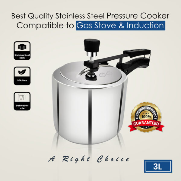 Sigriwala Marval Stainless Steel Induction base 3 L Inner Lid Induction Bottom Pressure Cooker (Stainless Steel)