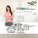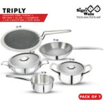 Sigri-wala Triply 7 Piece Cookware Set (Kadai, Pan, Saucepan, Casserole, Tawa , 2 SS Lid)