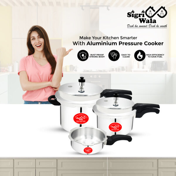 Sigriwala Outer Lid Combo Non Induction 2 L, 3 L, 5 L Outer Lid Pressure Cooker (Aluminium)