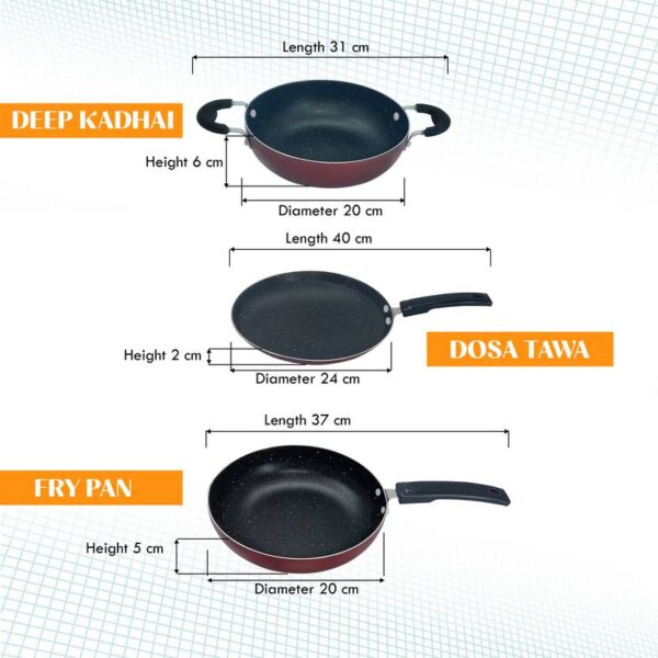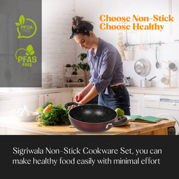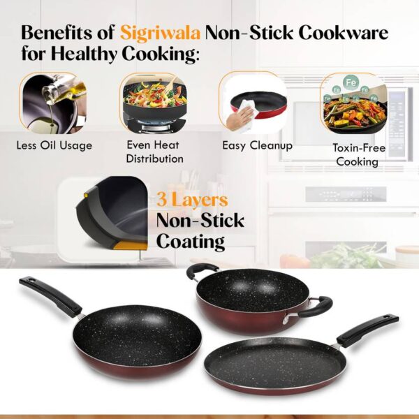 Sigriwala SmoothChef 3-Piece Non-Stick Induction Cookware Set – Fry Pan, Kadhai & Tawa