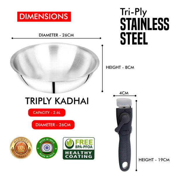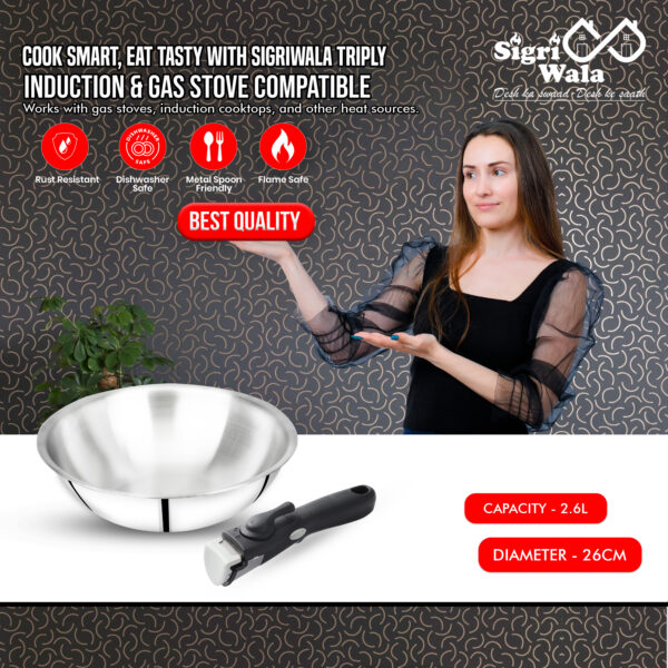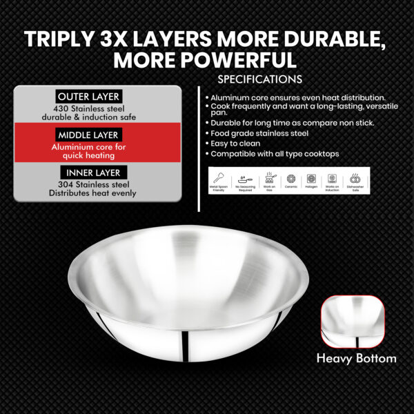 ✅ Capacity: 2.6L deep triply stainless steel kadhai