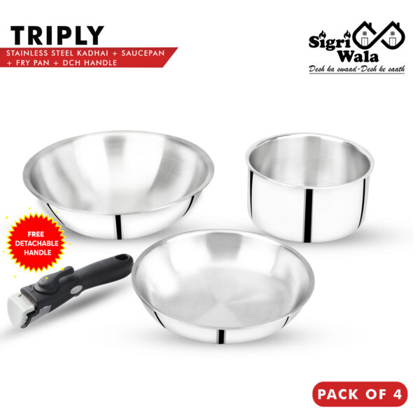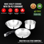 Kadhai Combo Set – 2.2L, 1.6L, 1.3L Triply Stainless Steel – Sigriwala