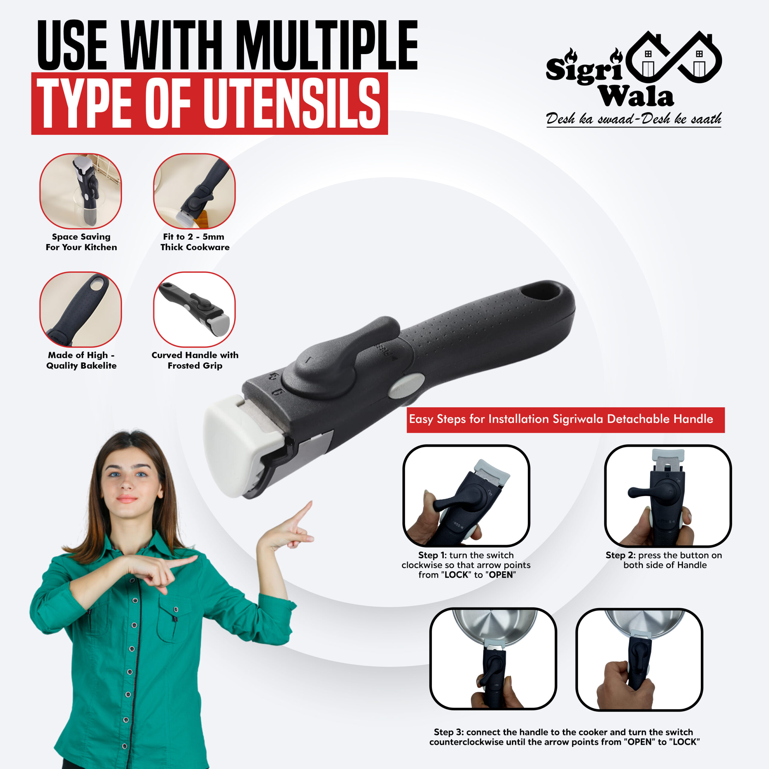✅ Handle: Heat-resistant Bakelite for superior grip