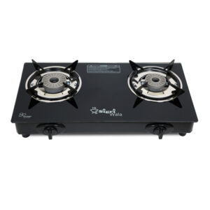 2 Burner Manual Gas Stove – Cute Black Glass Top, Tornado Burners with Jali Combo