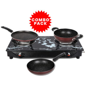 2 Burner Glass Top Cooktop with Family Cookware Combo – Manual Ignition | Sigriwala