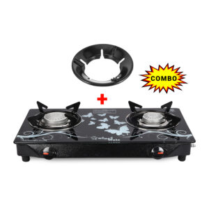 2 Burner Gas Stove Combo (2 Pcs Set) | Toughened Glass Tornado Burner | Manual Black Cooktop | Sigri Wala Cute Series